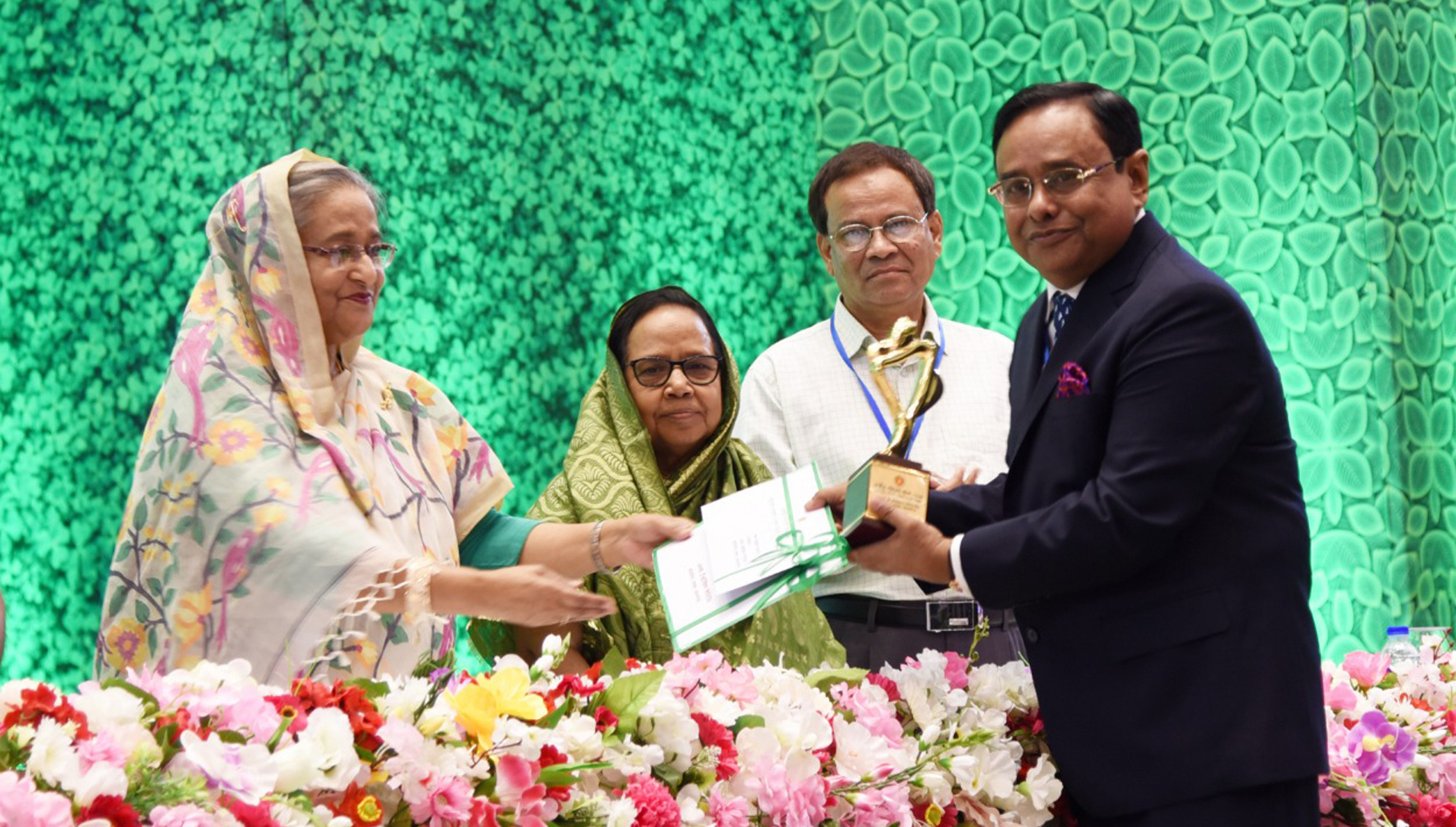 Receiving National Export Trophy from honourable PM, Govt of Bangladesh